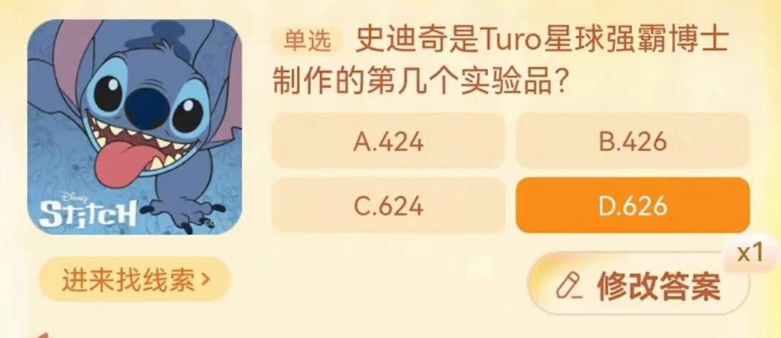 题目:史迪奇是Turo星球强霸博士制作的第几个实验品?
