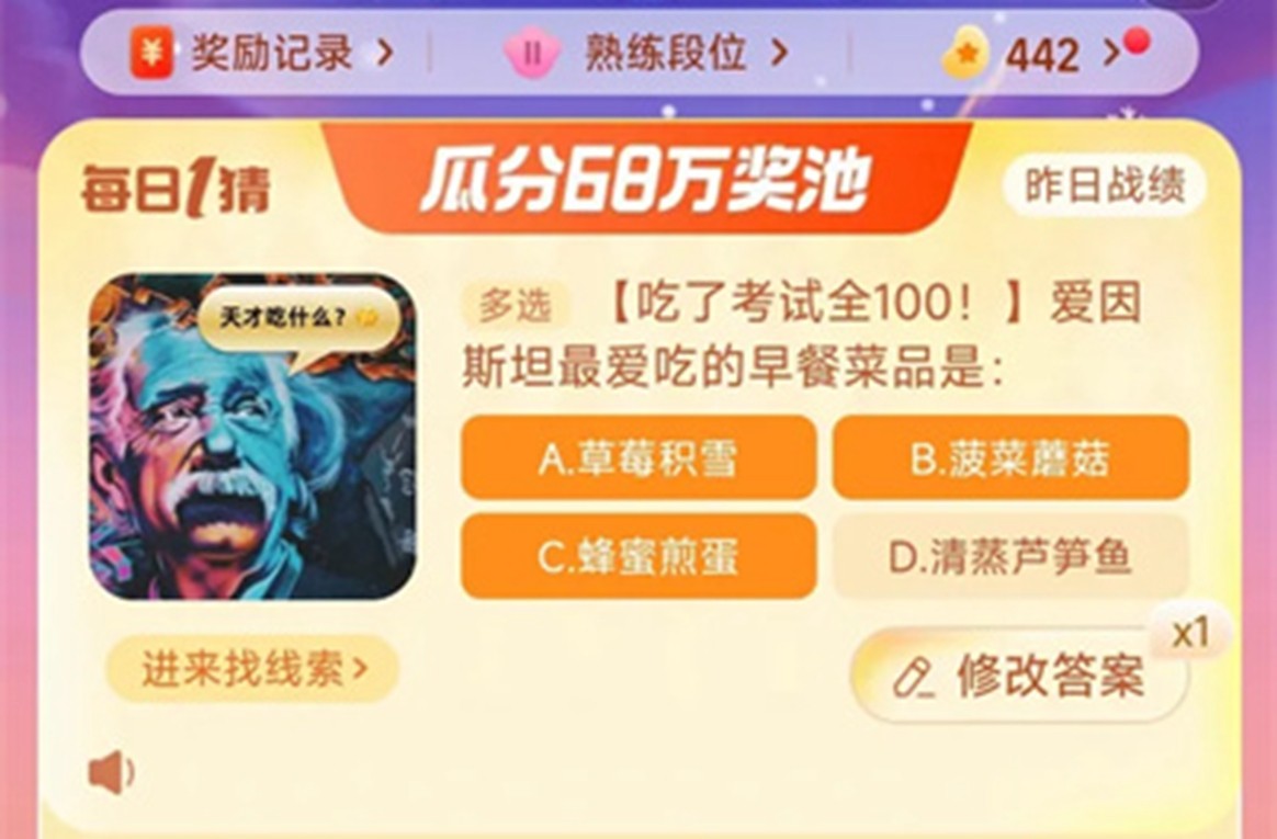 问题:爱因斯坦最爱吃的早餐菜品是?