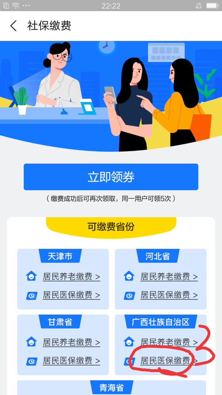 3.选择对应省份的“居民医保缴费”,点击进入。