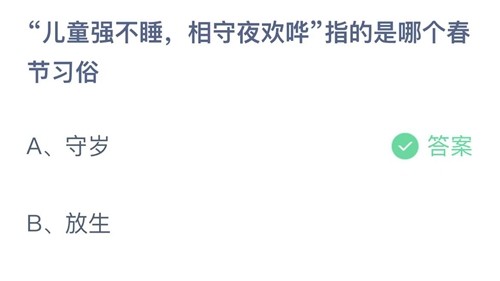 问题二:儿童强不睡,相守夜欢哗指的是哪个春节习俗?