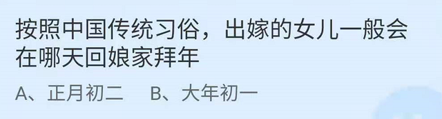 问题一:传统习俗中大年初二多数地方结了婚的女儿一般会?