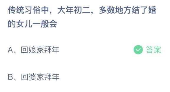 选项:A、回娘家拜年,B、回婆家拜年