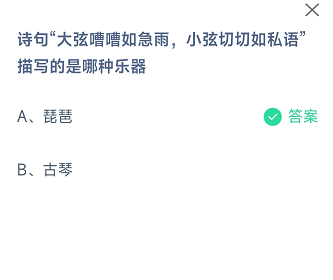 问题二:诗句大弦嘈嘈如急雨小弦切切如私语描写的是哪种乐器?