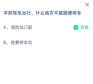 答案:消防站门前。公共汽车站、急救站、加油站、消防栓或者消防队(站)门前以及距离上述地点30米以内的路段,除使用上述设施的以外,不得停车。
