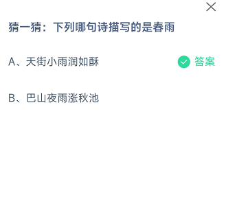 问题一:猜一猜下列哪句诗描写的是春雨?