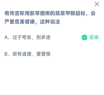问题二:有传言称用胶带捆绑的蔬菜甲醛超标会严重危害健康这种说法?
