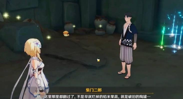 2.前往刃连岛救下NPC柴门二郎,并开启任务【农民的宝藏】。